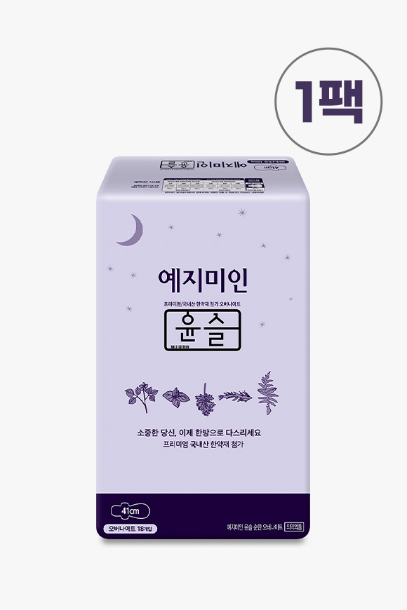 [세트]한방 순한순면 윤슬 생리대 1박스 (일반라이너,소형,중형,대형,오버나이트)