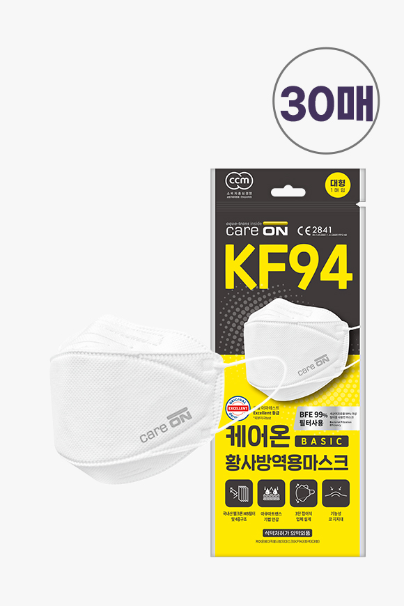 베이직 황사방역 KF-94/3D 플러스 마스크(흰색) 1Px30팩