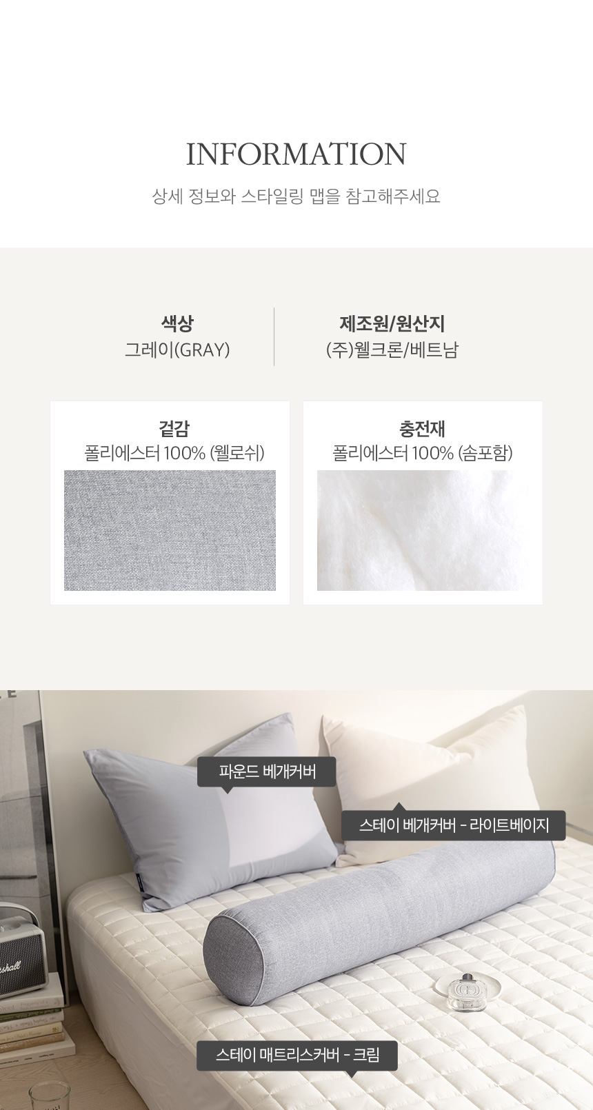• 롤 솜을 충전하여 솜 꺼짐 걱정없이 오래도록 사용 가능