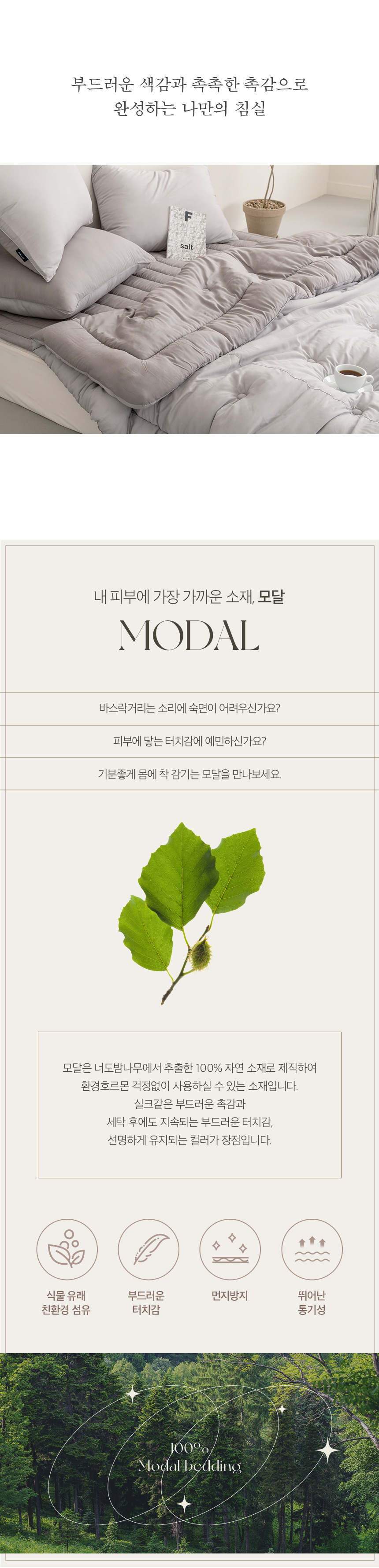 • 너도밤나무에서 추출한 모달 원단으로 피부자극 최소화