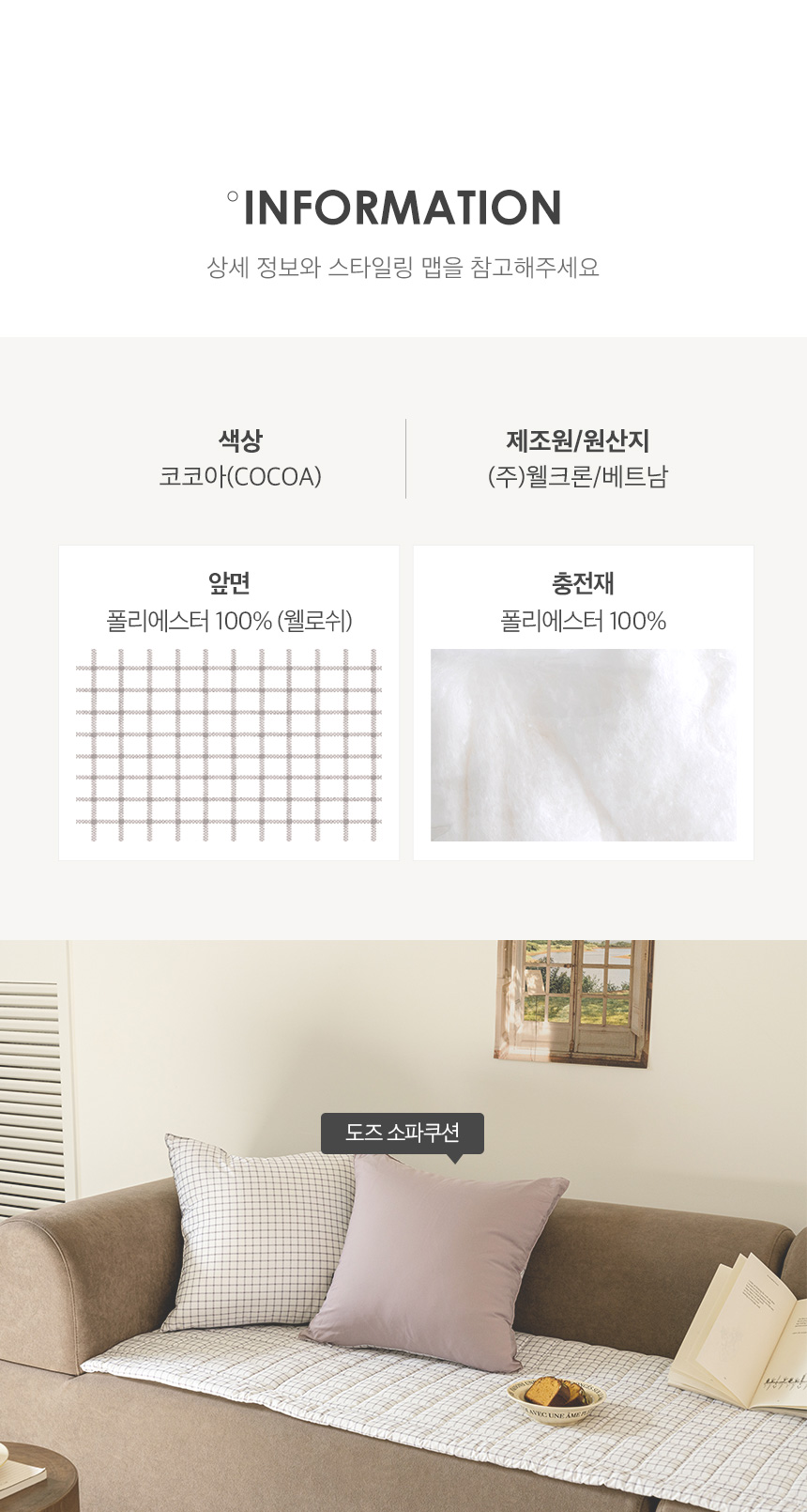 • 미끄럼 방지 논슬립 원단으로 소파에서 미끄러지지 않고 편안한 사용이 가능