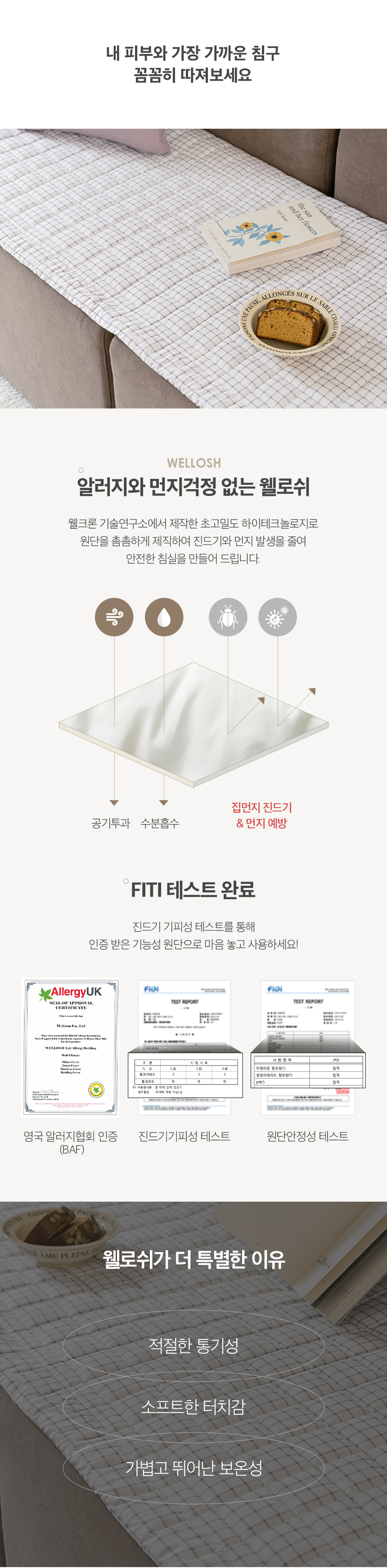 • 알러지와 아토피, 비염 걱정을 덜어주는 웰로쉬 알러지케어 기능성 소재