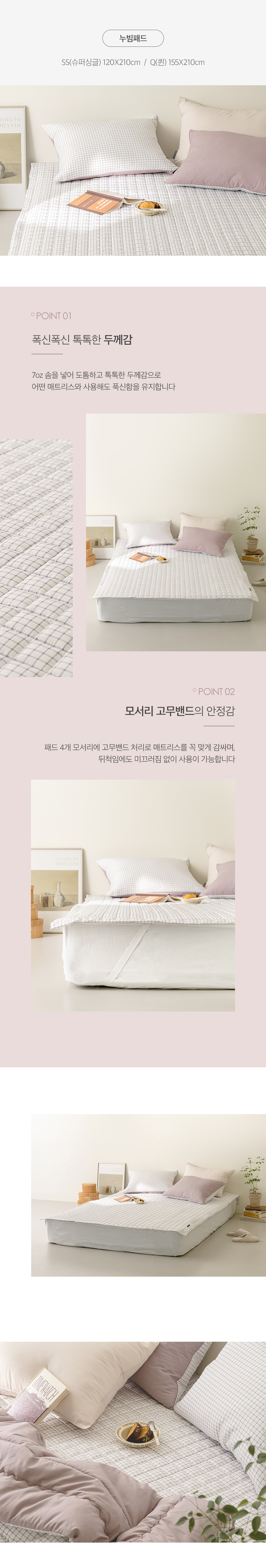 • 패드 4면에 밴드처리가 되어 있어 잠자리 뒤척임에도 걱정없이 사용 가능
