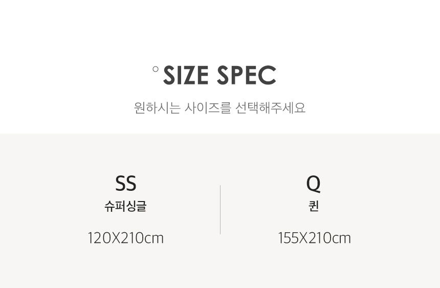 SS: 120X210cm, Q: 155X210cm