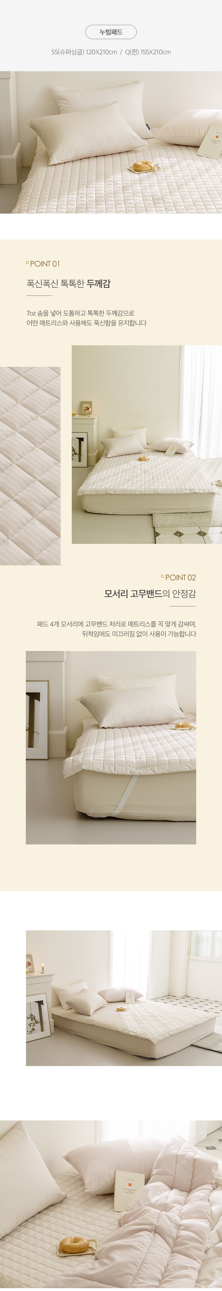 • 패드 4면에 밴드처리가 되어 있어 잠자리 뒤척임에도 걱정없이 사용 가능