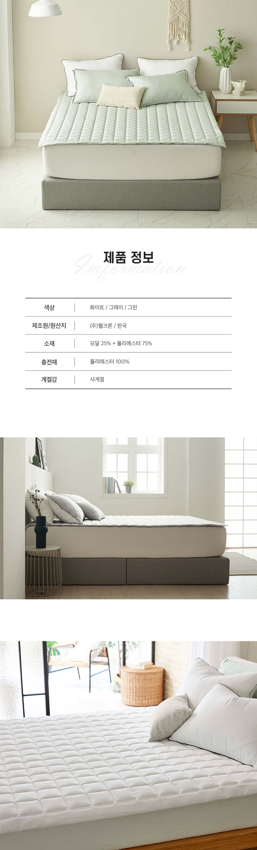 누빔패드 : 120X210cm, 155X210cm, 180X210cm
