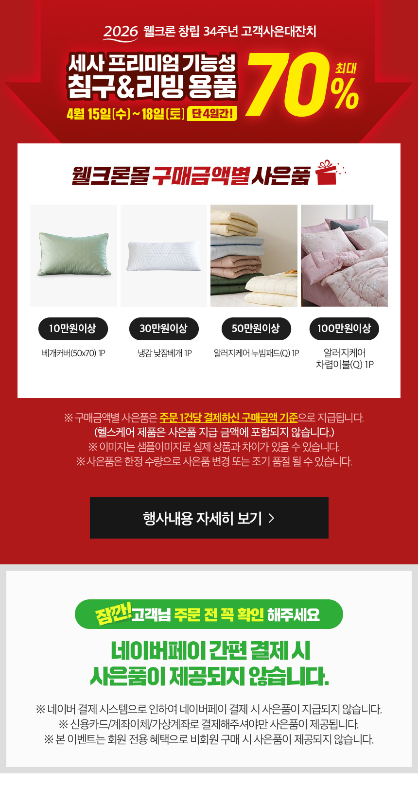 - 일부 특가 상품의 경우, 인수 후에는 제품 하자나 오배송의 경우를 제외한 고객님의 단순변심에 의한 교환, 반품이 불가능할 수 있사오니, 각 상품의 상품상세정보를 꼭 참조하십시오.