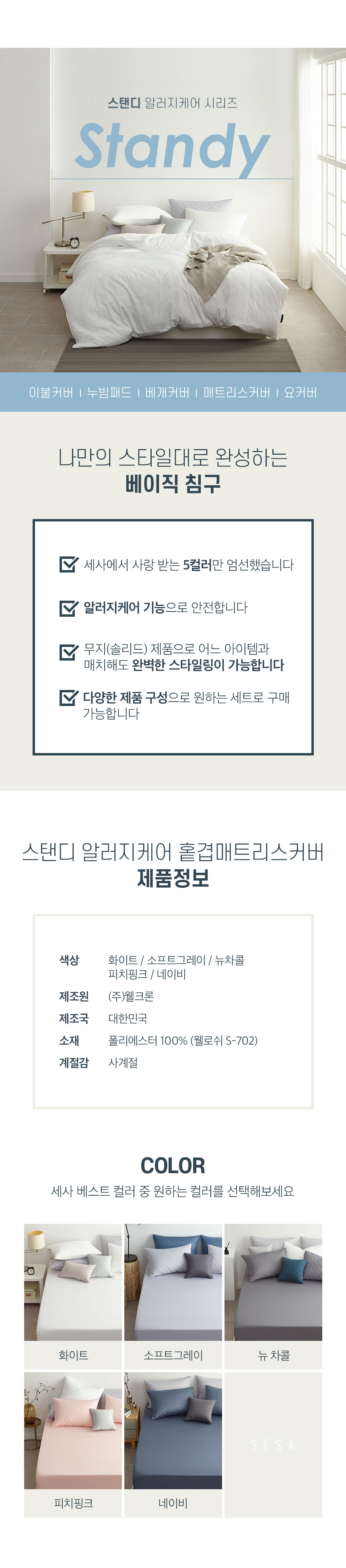 • 스탠디 알러지케어 홑겹매트리스커버 (S/Q)